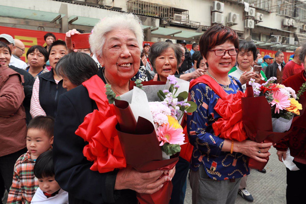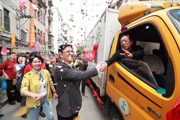 歡送曹楊八村舊住房成套改造首批外搬居民
