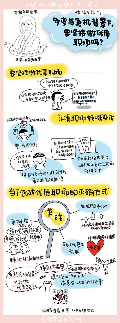 王芳認為,能看清以上這些變化,就能找到當下創建優質職場的正確方式。而對于今年疫情之下忙于應對危機的很多企業不再重視優質職場的現象,她不是很認同。她認為此時反而更應該做優質職場,以充分蓄積企業向前的能量,不過,做的角度和方式會和以前不同。