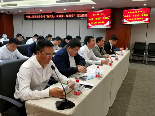 為進一步提升中建二局華東公司各級履約能力,保障2020年度公司整體目標完美實現,公司于11月5日召開了兩級總部生產系統視頻會議。會議上,公司生產副總經理劉四海做了專題講話,強調了臨近年底,各級生產工作存在的管理壓力和風險,明確了四季度攻堅沖刺的目標,提出了在全公司范圍內啟動“保安全、保質量、保穩定,大干50天,攻堅高品質履約”的專項活動。根據會議精神,今天召開“保安全、保質量、保穩定”專項活動推進會,旨在進一步落實各項活動要求,營造全員活動氛圍。主會場設在公司總部四樓大會議室,分會場為各分公司、事業部和項目部,參會人員約3000余人。
