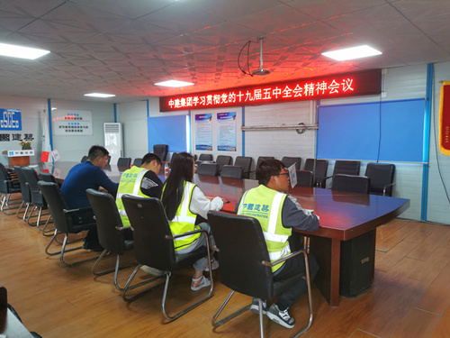 11月6日,中建二局華東公司威海雅居冠軍體育小鎮項目組織黨員參加中建集團學習貫徹黨的十九屆五中全會精神的視頻會議。