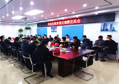 隨后,韓剛一行前往項目會議室開展阜南縣教育項目觀摩交流座談會。會上,曹暉指出,年關將至,項目各參與施工的單位務必要提高重視程度,全力以赴做好既定建設任務,確保高品質履約,并著重強調阜南職教中心項目是阜南縣重點工程,應充分發揮中建二局作為國企的管理優勢,帶動阜南縣整體教育水平的提升。