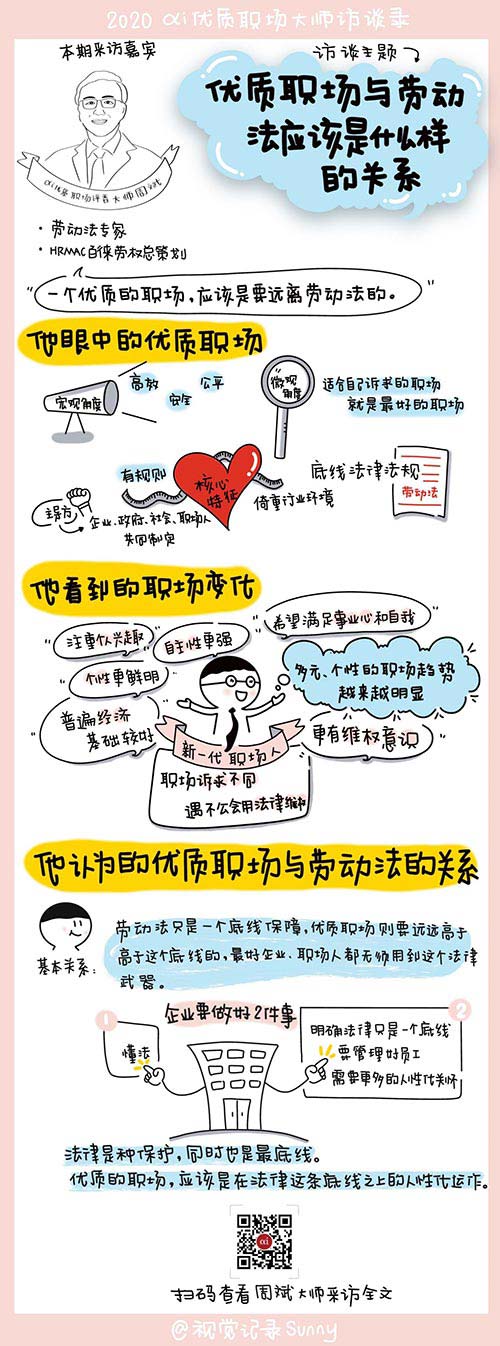 他總結說,法律是種保護,同時也是最底線,優質的職場,應該是在法律這條底線之上的人性化運作。