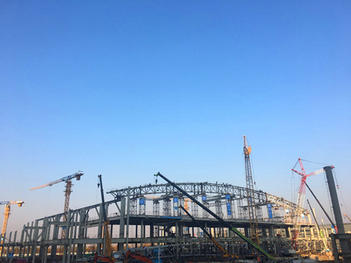 12月4日下午,由中建二局華東公司安徽分公司承建的合肥濱湖國際會展中心二期項目2號綜合展館144米首榀鋼結構桁架在高空順利合攏,標志著2號綜合展館全面進入屋面安裝階段。