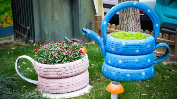 “美”就在身邊,紅花、綠樹、墻和廢舊輪胎做出來的雕塑,廢舊水管做出來的小鹿……美化小區的景觀遍布角角落落。
