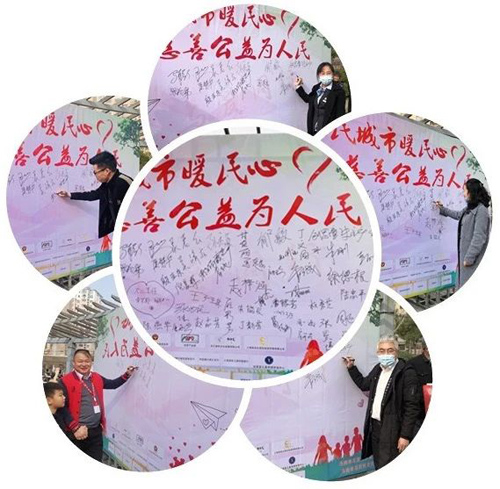 伴隨著現場歌曲“愛的奉獻”不斷循環,廣場上處處洋溢著濃濃的愛意,讓這個冬日充滿溫暖。應邀及自發參與此次活動的共建單位及社會團體都早早來到了現場,在愛心墻上簽上了自己的愛心署名。