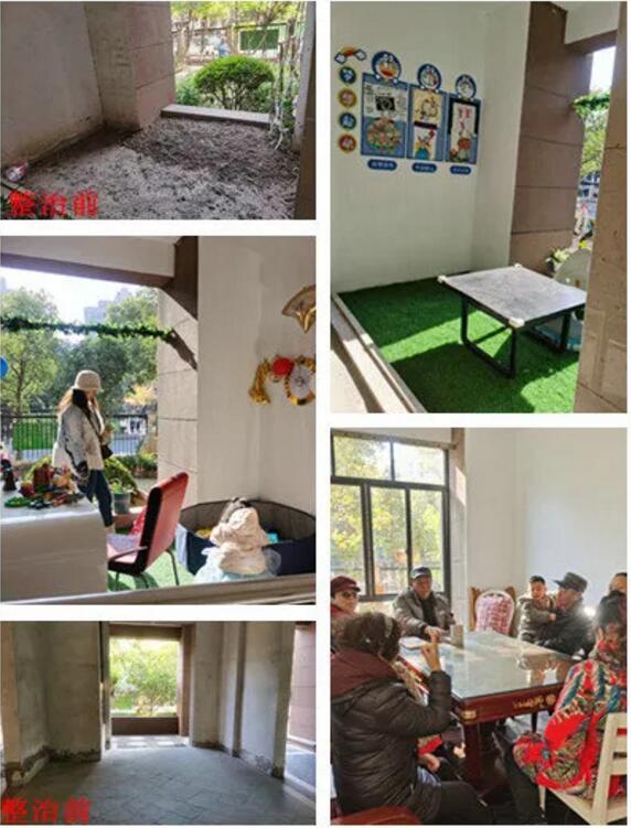 在香逸灣社區這個大家庭的共同努力下,香逸灣58弄1號樓道打造成了別具一格的“客廳花園”,室內是居民議事、喝茶聊天、看書下棋的“公共客廳”,室外是賞心悅目的“一米花田”,草坪上擺放著居民舊物改造的兒童設施更是孩子們的“游樂園”。