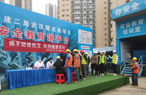 12月19日,新華街社區衛生服務中心走進中建二局湖北分公司武漢精武路項目,為廣大農民工兄弟帶來預防艾滋病宣講。