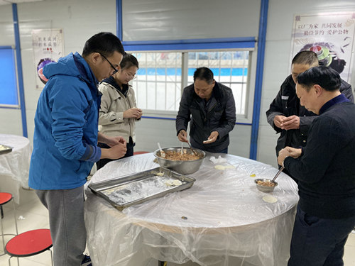 作為建筑人我們漂泊四方,在這個寒冬,一頓熱騰騰的餃子把彼此的距離拉的更近了。我們不是親人,但是勝似親人的生活在一起,這就是項目的魅力!(王佳陳 高友)
