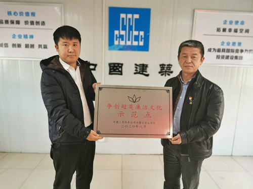近日,中建二局華東公司黨委副書記、紀委書記、工會主席樊學民在永修云居山項目進行了“謝冬創新工作室”“爭創超英廉潔文化示范點”授牌儀式,并對項目科技創新成果和廉潔宣教工作給予了充分的肯定。