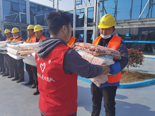 12月27日下午,工友們紛紛來到奉賢中電建項目部領取愛心棉被, 在項目部員工的精心指導下,棉被井井有條地發放到在場的每一位工友手上。工友們拿到棉被后也紛紛表示非常感謝項目部和愛心組織的關懷和幫助,在你們的幫扶和關照下,我們一定會以更加飽滿的熱情投入到工程建設中去。