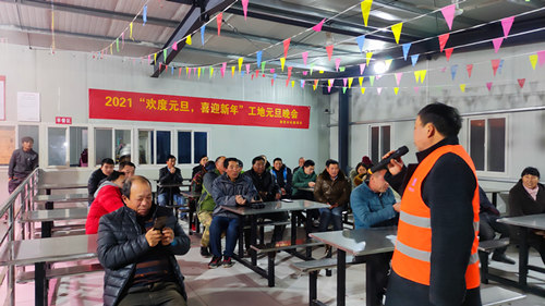 近日,中建二局華東公司奉賢中電建項目同多才多藝的工友們為元旦期間堅守一線的建設者們送上了一場晚會演出。12月31日下午6點半,奉賢中電建項目的工人食堂里,工人們早已坐好,等候晚會的開始。伴隨著《歡聚一堂》的音樂響起,元旦晚會也正式開始。晚會上,工友朋友們載歌載舞,其他工友也踴躍登臺獻藝,并為廣大工友送上節日的祝福。其間,為增強工友的參與度和積極性,晚會過程中還穿插了猜燈謎等互動游戲,整場晚會持續了近兩個小時,大家在歡快、輕松氣氛中度過。最后晚會也完美落幕。