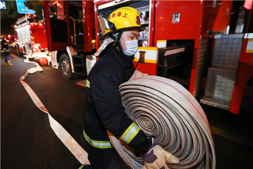 市應急聯動中心接到報警后,根據火情等級,先后調派長寧支隊的長寧、天山、延安、新涇4個消防站、11輛消防車及80余名指戰員奔赴起火商場。5分鐘后,長寧消防站參戰力量率先抵達現場展開處置。