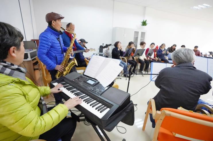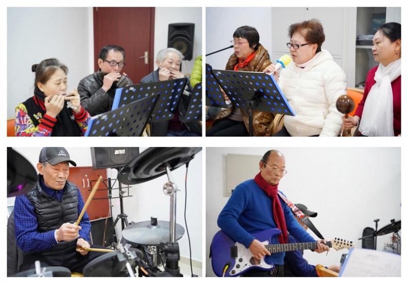 音樂不分國界,也不分年齡。在趙巷鎮華秀社區,16名擁有共同音樂愛好的長者相聚在一起,組建了一支平均年齡為70歲的老年樂隊。其中年紀最長的已有74歲,卻仍像少年般恣意灑脫。樂隊有一個美麗的名字叫“金色夕陽”,寓意晚年燦爛的時光。