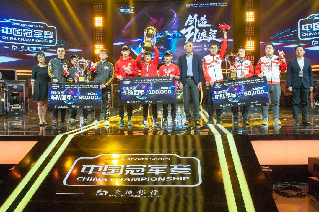 LHR車隊的袁一帆、BT車隊的唐天宇,分獲職業聯賽車手冠亞軍,他們接過寫有“F1中國冠軍賽”“創造F1中國速度”的兩面戰旗,將代表中國參加下一年度的F1電競職業系列賽車隊選秀。