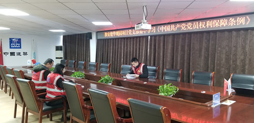 1月7日,中建二局華東公司淮安建華觀園項目黨支部全體黨員在淮安建華觀園項目大會議室集中學習《中國共產黨黨員權利保障條例》,深入貫徹黨員權利行使、保障措施及職責任務。
