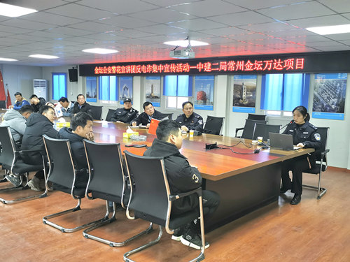 1月10日,是第一個”中國人民警察節”,為進一步促進警企關系,提高項目職工安全防范意識和防范能力,中建二局華東公司江蘇分公司常州金壇萬達項目邀請金壇公安局東城街道派出所到項目進行反電詐宣傳活動,加強警企合作,形成警企攜手抓穩定、保平安的合力,全面營造安全、穩定、和諧的社會環境。