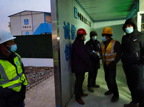 每天清晨六點半,合肥濱湖國際會展中心二期項目當天值班管理人員對入場施工勞務人員測量體溫及發放防疫醫用口罩,并宣傳和普及傳染病防控知識,提高廣大施工人員的自我保護意識。