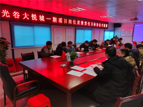 近日,為保持項目質量管理體系正常運行,提升項目基礎管理,建造國家、社會、企業和人民滿意的工程,根據國家、行業及企業質量管理有關規定,中建二局華東公司湖北分公司武漢光谷大悅城項目開展崗位質量責任目標協議簽訂活動;顒佑身椖抠|量部經理童睿主持,項目全體人員參加。