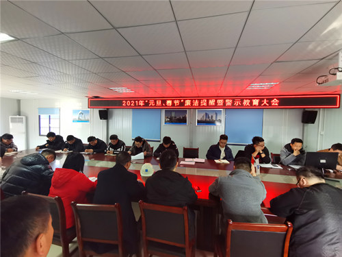 為進一步加強項目全體員工廉潔意識,筑牢思想防線,1月18日,中建二局華東公司永修云居山項目召開2021年“元旦·春節”廉潔提醒暨警示教育大會,項目全體員工共40人參與會議,會議由黨支部書記李冀琨主持。