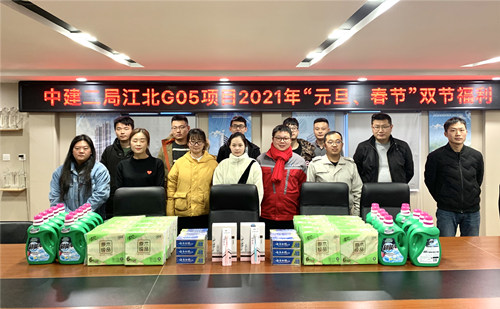 近日,中建二局華東公司江蘇分公司江北新區2018G05租賃住房項目工會支會以“七仙送暖”的歡樂形式開展了“元旦、春節”雙節職工慰問活動,為奮戰一線,克難攻堅的職工送上洗衣液、牙膏等生活所需用品,向全體職工表示慰問。