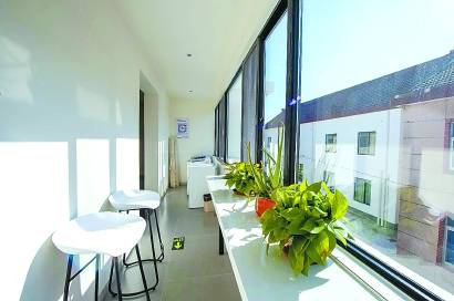 其次是品質。不難發現,現在推出的鄉村人才公寓,大多在房屋裝修上下了番功夫。華嚴村的人才公寓選擇北歐設計風格,每個房間配有空調、洗衣機、24小時熱水器、無線上網、獨立廚衛設施等,外圍還有停車位、充電樁、快遞柜。新豐村最早開發的公寓包含共享廚房、洗衣房、閱覽室、活動室、庭院及停車位等公共設施,密碼門鎖、24小時監控探頭、電子圍欄等安全設施。最近剛竣工的奉賢區南橋鎮沈陸村人才公寓,甚至推出可供一家三口入住的套房,面積在60平方米以上。