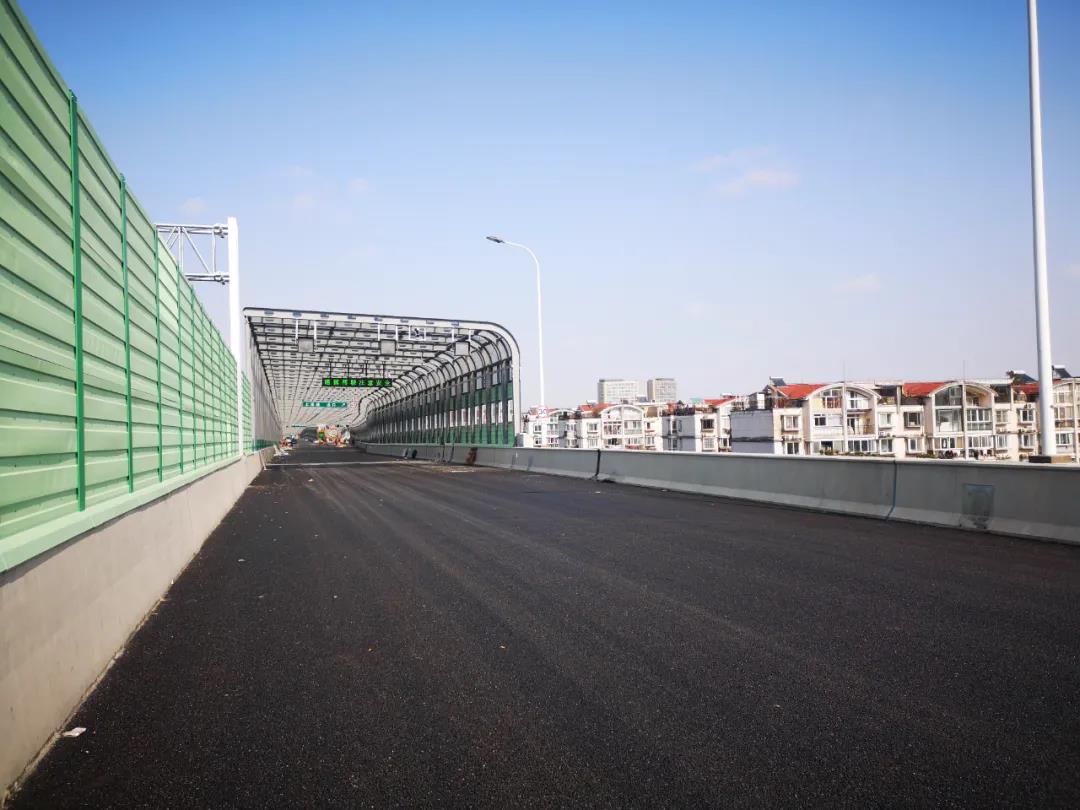 在尚未通車的高架上,路面保潔、電子信息牌的調試等一些最后收尾工作正在進行。全線在臨近居民小區的多個路段,設置了新型的全影型聲屏障,總長度達到了3.150公里,能夠降噪15分貝以上。