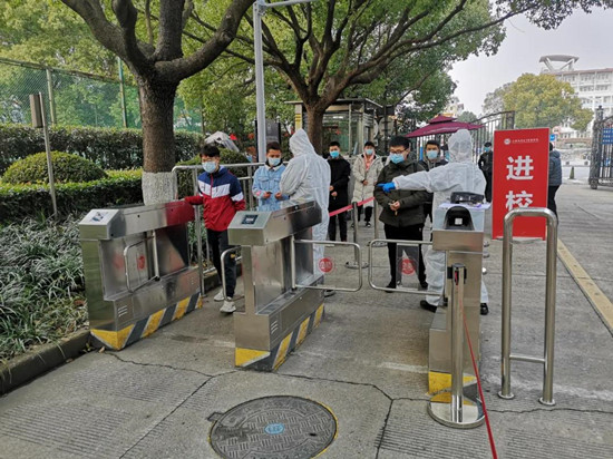 間隔一米有序排隊,人臉識別、體溫測量,一旦“發現”發燒學生立即啟動緊急處置流程……不久前,上海立信會計金融學院在浦東和松江兩個校區的校門口、食堂、圖書館、學生寢室、衛生室等區域,開展了寒假疫情防控應急處置演練活動,為校園安全保駕護航。