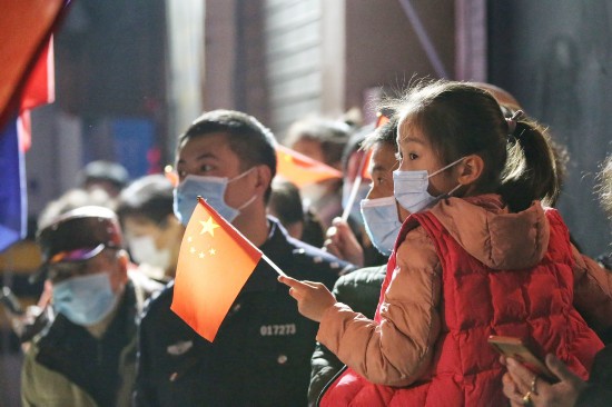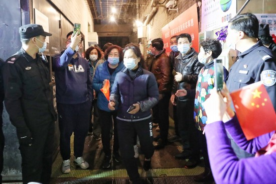 摘要:18時,貴西小區封閉多日的弄堂大門打開了,小區居民揮舞著小紅旗走出小區。
