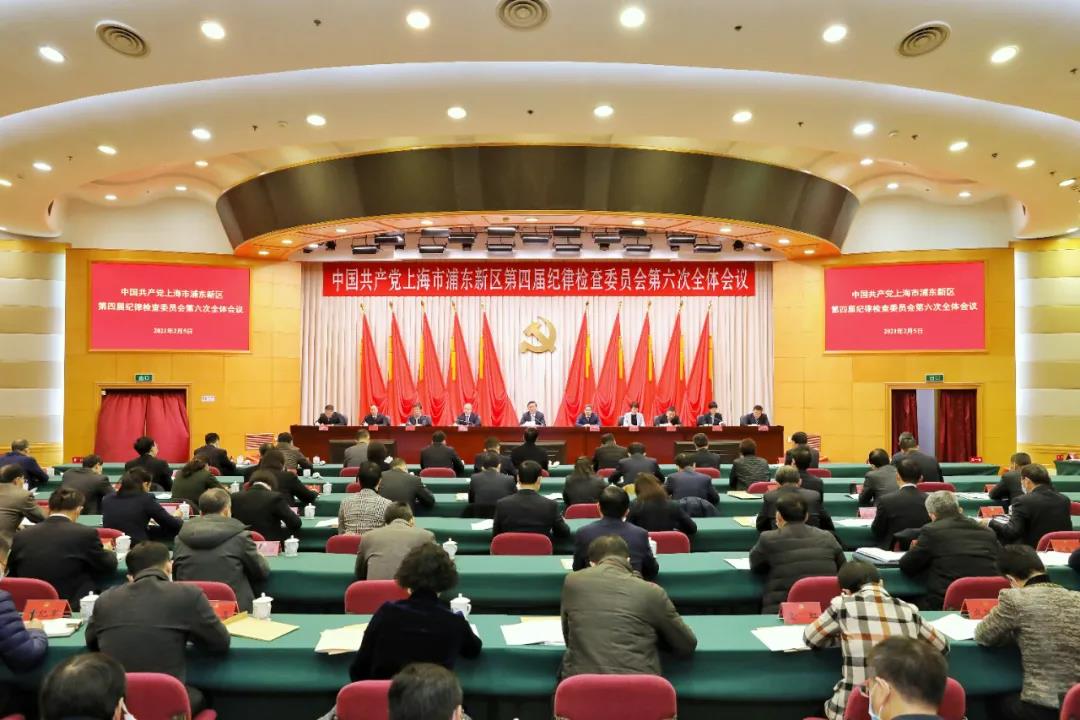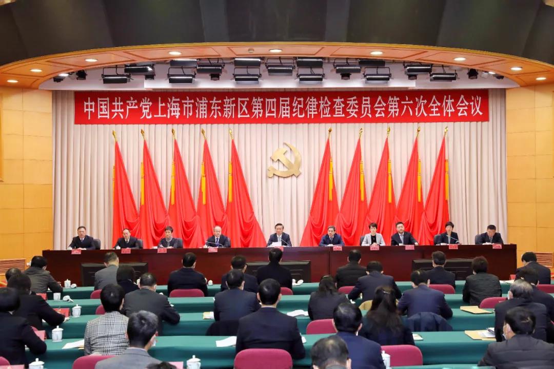 中國共產黨上海市浦東新區第四屆紀律檢查委員會第六次全體會議2月5日舉行。全會深入學習貫徹習近平總書記在十九屆中央紀委五次全會上的重要講話和中紀委全會精神,以及十一屆市紀委五次全會精神,對浦東深化全面從嚴治黨作出部署。市委常委、區委書記翁祖亮在全會第一次會議上強調,黨風正則人心齊,人心齊則事業興,要深入貫徹全面從嚴治黨方針,堅持以黨的自我革命引領偉大社會革命,堅定不移全面從嚴治黨,堅定不移推進黨風廉政建設和反腐敗斗爭,堅定不移把黨建設得更加堅強有力,奮力創造新時代浦東高水平改革開放新奇跡,以優異成績慶祝建黨100周年。