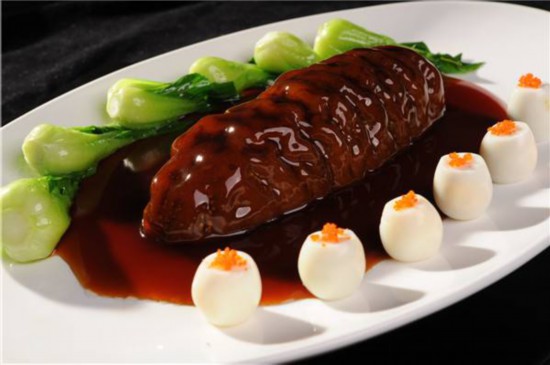 本幫菜最講究“濃油赤醬”四個字,以真材實料和慢火細工取勝,這道菜就是典型的本幫菜做法。蝦子大烏參配鴿蛋從選料、漲發到烹調,整個制作過程極為繁復,非?简瀼N師的烹飪手藝。其次,經過改良的大烏參搭配鴿蛋,豐富了原有食材,肥腴不膩的口感酷似紅燒蹄筋。裝盤后的蝦子大烏參配鴿蛋表面油光發亮,用筷子夾起便能感受到它的黏糯,酥而不碎,吃到嘴里,更是軟潤香糯,鮮美醇厚。