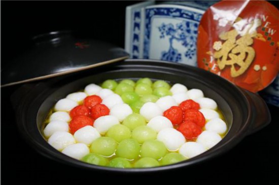 滿滿當當一砂鍋,寓意團團圓圓、和和滿滿。三元·四喜的構思就是源于杭州百姓春節年夜飯時喜聞樂見的三鮮砂鍋,取材葷素搭配以素為主,色澤靚麗,制作上傳承與創新并舉,采用杭州名菜之一清湯魚圓入菜。