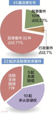 記者進一步分析涉及賠償的22份名譽權侵權糾紛判決,原告要求賠償損失最高的達66萬余元,最低的僅要求賠償1元。法院判決支持賠償訴求的僅有7件,占比32%,其中判賠數額最高的1萬元,最低的900元。