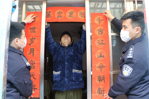 在分局西渡派出所,1月9日上午,由民警邀請轄區留滬員工代表開展了一場“你留滬,我守護”安全防范宣傳活動,送上新春對聯和“!弊,讓大家感受濃濃的年味。