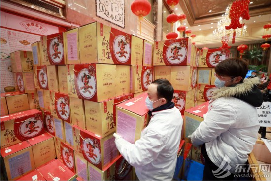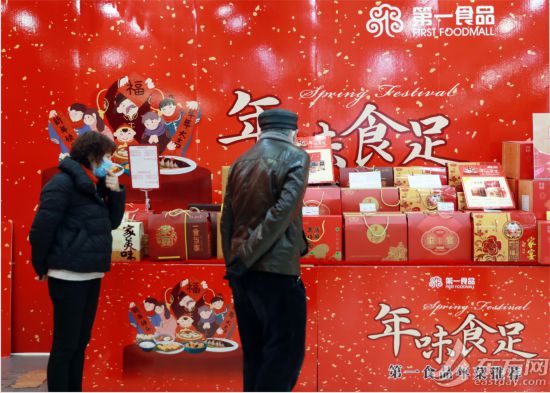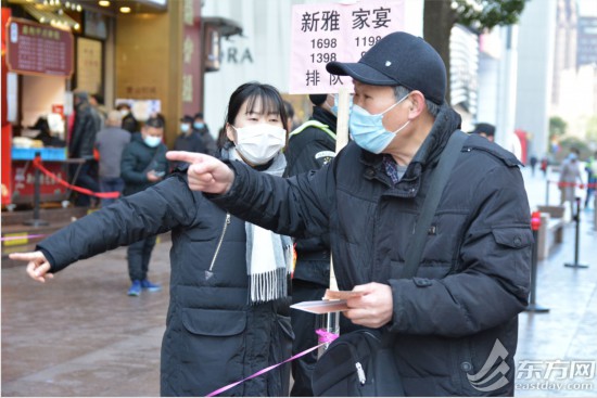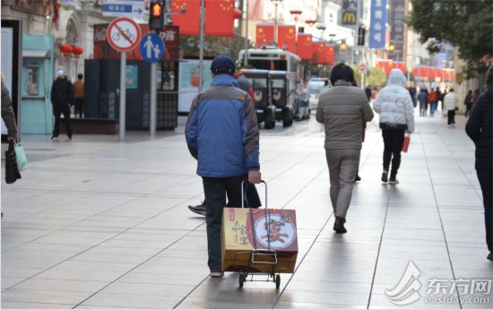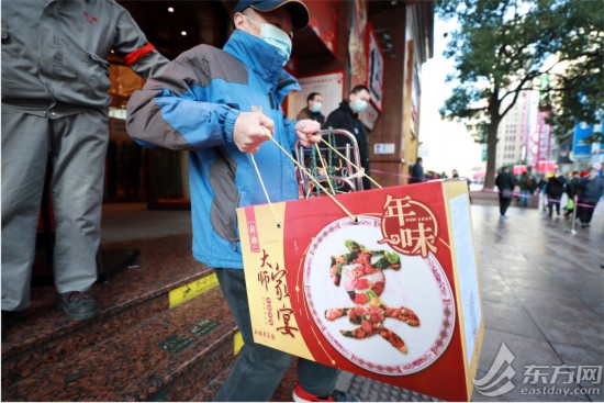 新春倒計時,南京路步行街紅色元素就位,過年氣氛濃厚。各家老字號今年均推出了半成品年夜飯,今天起迎來領貨高峰,市民紛紛前來把年夜飯、熟食鹵菜等食品拎回家。