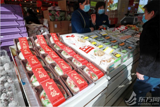 年夜飯餐桌上怎少得了八寶飯?三陽南貨店的八寶飯放在柜臺的顯著位置,消費者也非!辟I賬“。