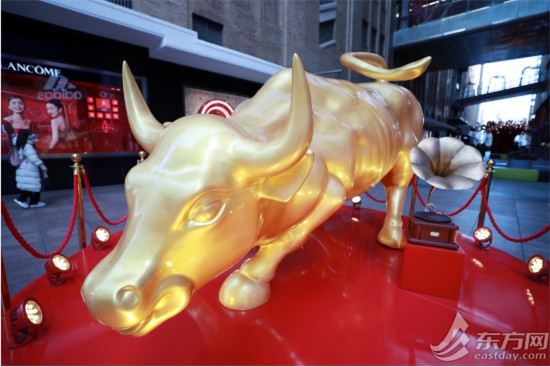 不僅僅“年菜半成品”帶有年味,南京路上也擺上了金牛以賀歲。