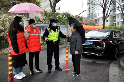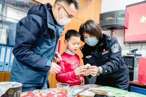 茶話會結束后,幾位外地來滬的年輕人還穿上了平安志愿者的衣服,跟錢海鷗一起在小區內巡邏,并向居民宣傳反詐知識,對于他們來說,留在上海,一樣“年味”十足。