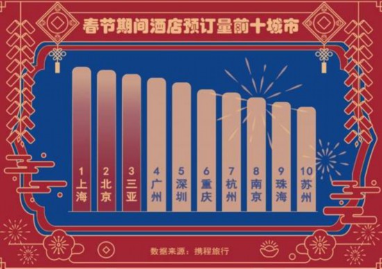 三亞·亞特蘭蒂斯酒店、上海浦東嘉里大酒店、上海玩具總動員酒店、上海金茂君悅大酒店、上海東方佘山索菲特大酒店、上海海昌海洋公園度假酒店、廣州森林海溫泉度假酒店、廣州三英溫泉度假酒店、上海佘山世茂洲際酒店(世茂深坑酒店)、上海南郊賓館入圍春節期間最受歡迎酒店TOP10。