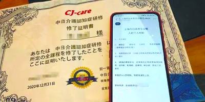 此外,浦東新區人力資源和社會保障局還對懿一管家教育科技(上海)有限公司發放《中日介護認知癥研修修了證明書》一事進行核查。