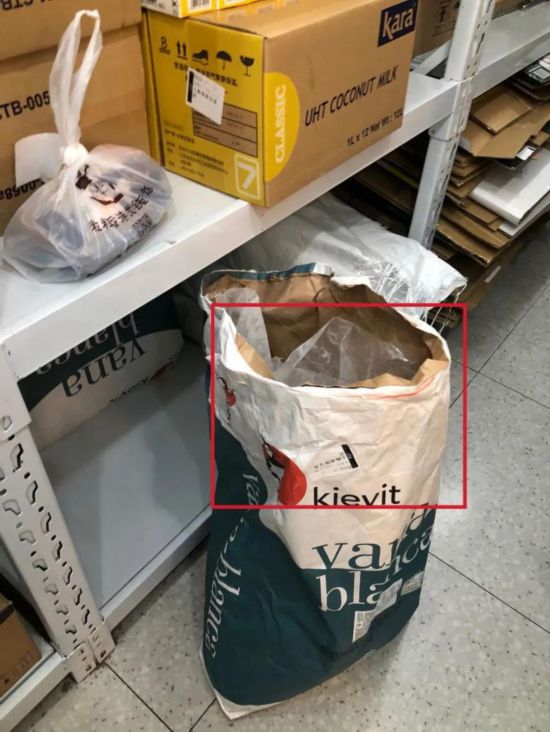 在7分甜門店,同樣存在員工私人食品與店內原料混放、倉庫內裝原材料的袋子未封口等問題,該店報廢的芒果等水果還被發現隨意丟棄,未按規定存放和處置。