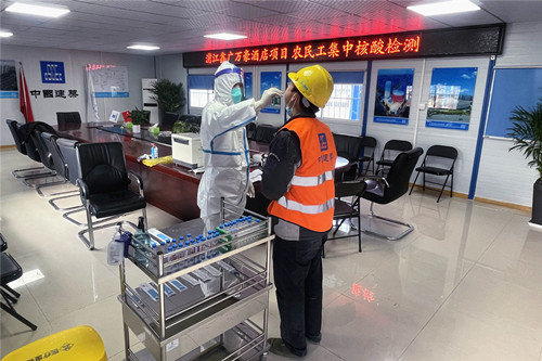 2021年春運已經開始,不同于往年工人集體返鄉的熱潮,今年不少工人都選擇就地過年,但是回鄉人員依然不少。2月2號,中建二局華東公司浦江鑫廣萬豪德爾塔酒店、住宅及商業綜合體總承包施工工程項目為了守護項目部工人及管理人員的回家之路,特在工人回家前將浦江縣浦南街道社區衛生服務中心的醫務人員請到項目部,為所有工人及管理人員進行集中核酸檢測。