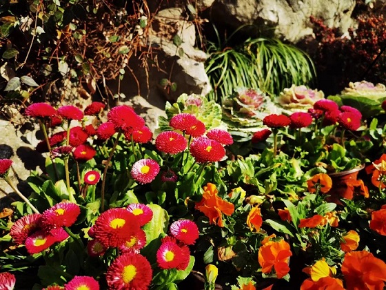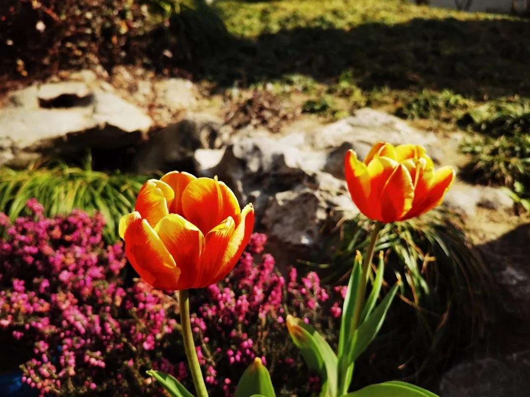 走進曲水園,一道精心布置的盆栽花帶就讓人眼前一亮,盛裝的郁金香、素雅的羽衣甘藍,春天的氣息撲面而來。