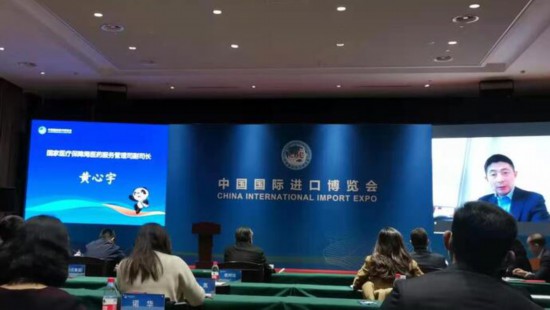 第四屆中國國際進口博覽會醫療器械及醫藥保健展區生物醫藥專區宣介會現場。
