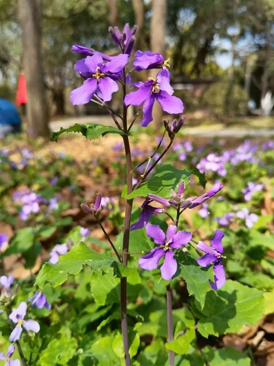 每年乍暖還寒的時候,一種紫色的小花便會在共青森林公園內悄無聲息地綻放,那便是二月蘭。單朵二月蘭可能不會引起你的關注,然而一旦形成規模,你會被漫“山”遍野的二月蘭花海所震撼。