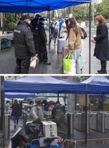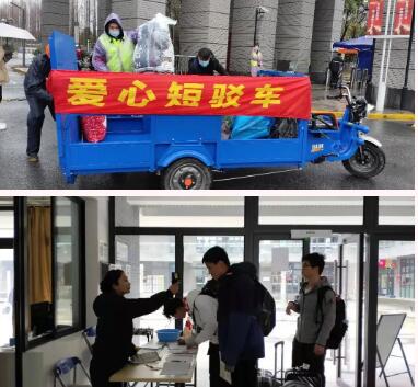 同學們掃碼、測量體溫后進入校園,熱情的志愿者和愛心短駁車已在細雨中等候。走進熟悉的宿舍,宿管阿姨耐心地為大家測溫,細致地給行李進行消殺……
