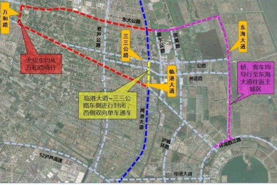 在上述路段封閉期間,大貨車可從萬和路繞行,往返臨港主城區的轎、客車均須導行至東海大道通行。 施工單位提醒兩港大道(S2-大治河)沿線企事業單位及居民做好出行規劃,以免耽誤行程。