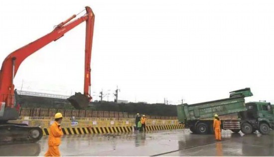 隨著 施工現場挖掘機、起重吊機發出隆隆轟鳴聲,盾構始發井挖掘工作拉開帷幕,始發井基坑長156米,開挖深度達25.5米,坑邊距滬杭高鐵最近處僅10.6米。該基坑是目前國內緊鄰高鐵路基的最大開挖深度基坑之一,對高鐵軌道位移控制要求極其嚴格;邮┕ゎA計9月完成,年底前進行盾構掘進。