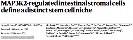 這項研究是蘇冰教授團隊通力協作的成果,也是蘇冰教授離開耶魯大學回國后加入上海交通大學醫學院開展的第一個課題。課題組伍寧波博士和孫宏翔博士是該論文的共同第一作者。伍寧波博士2012年開始啟動本課題的研究,受實驗室建設初期實驗條件限制,課題組用了近兩年的時間,直到2014年才開始建立并逐步積累實驗所需的基本條件,得到了第一個表型。之后又經過漫長的摸索,在伍寧波博士和孫宏翔博士的精誠團結緊密合作和課題組的支持下,最終聚焦到腸道間質細胞MRISC。