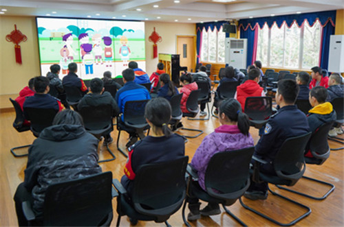閔行公安華坪路派出所民警同孩子們一起觀看安全防范動畫片