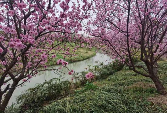 春回大地,早櫻、玉蘭、郁金香等各色春花競相盛放,梅花花期則基本步入尾聲。不過,一種名為美人梅的晚開品種,這幾天卻正當盛花期,開得如云似霞、粉紅一片。在金山花開海上生態園,記者看到了好幾片盛放的美人梅,比一般的梅花花朵更密集,襯著春日的水景,相當漂亮。不過,這種美艷的梅花花期僅有一周左右,上海其他公園景點也較少看到,令正好遇上其盛放“檔期”的游客頗感幸運。
